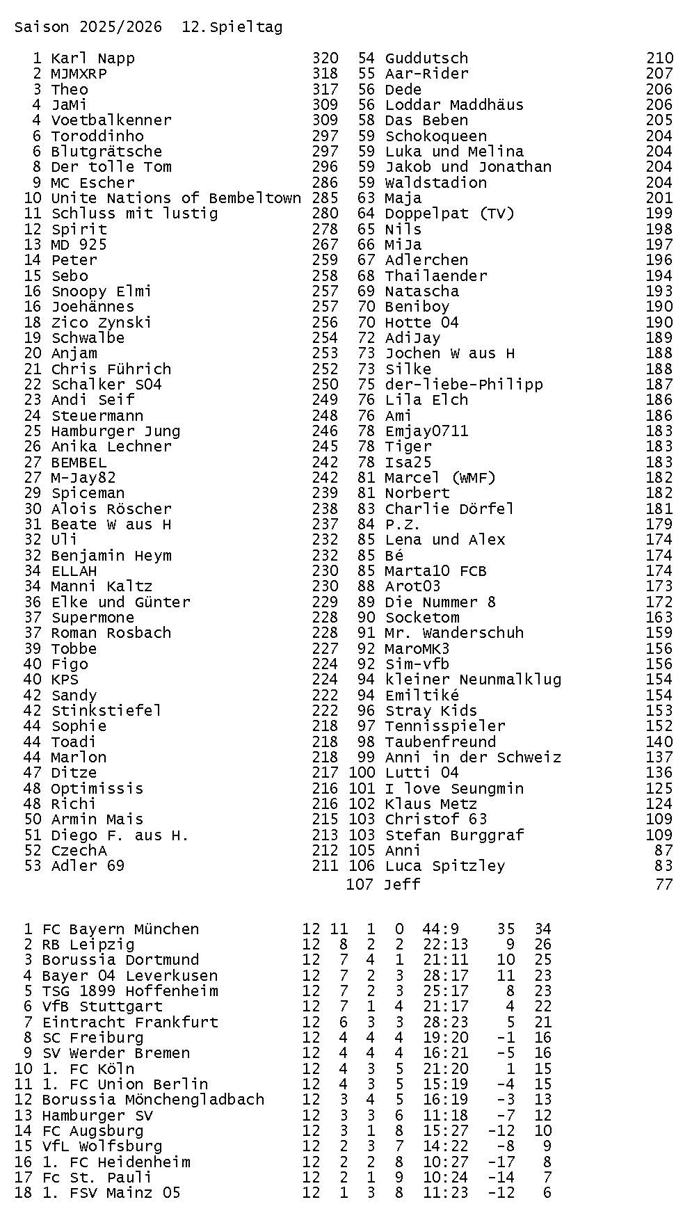 Spieltag 12 – Saison 2025/26