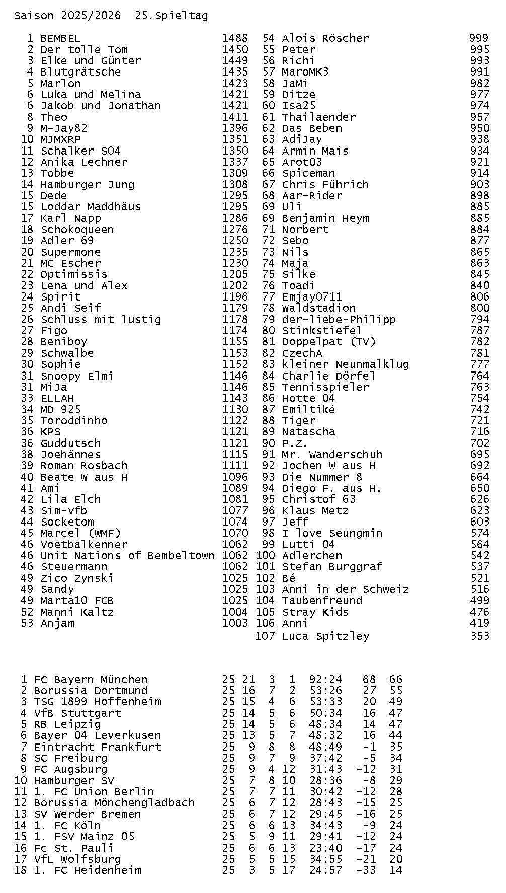 Spieltag 25 – Saison 2025/26